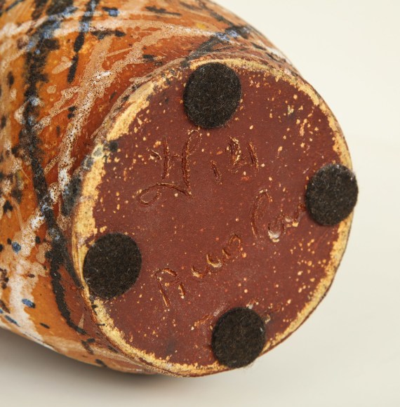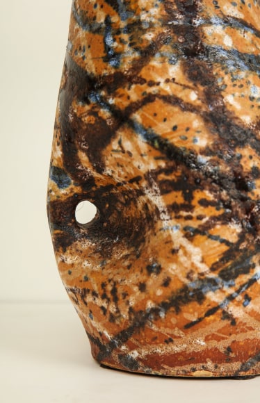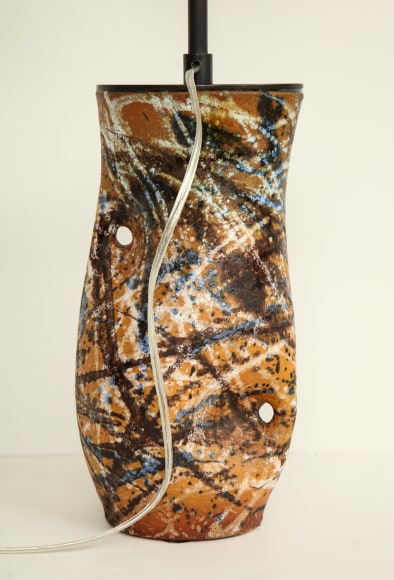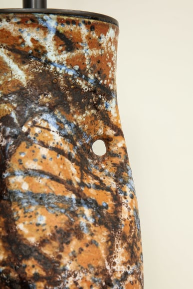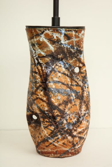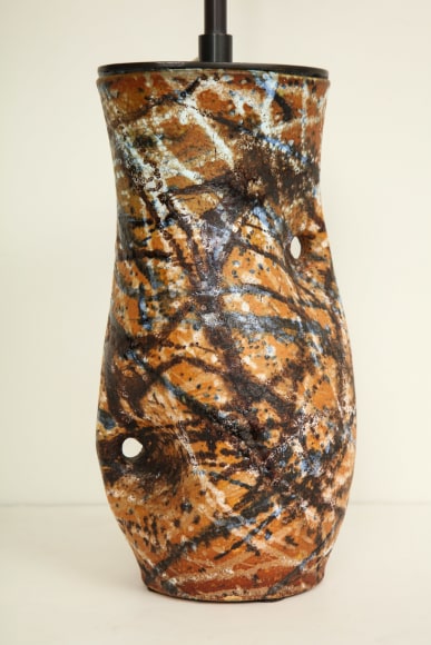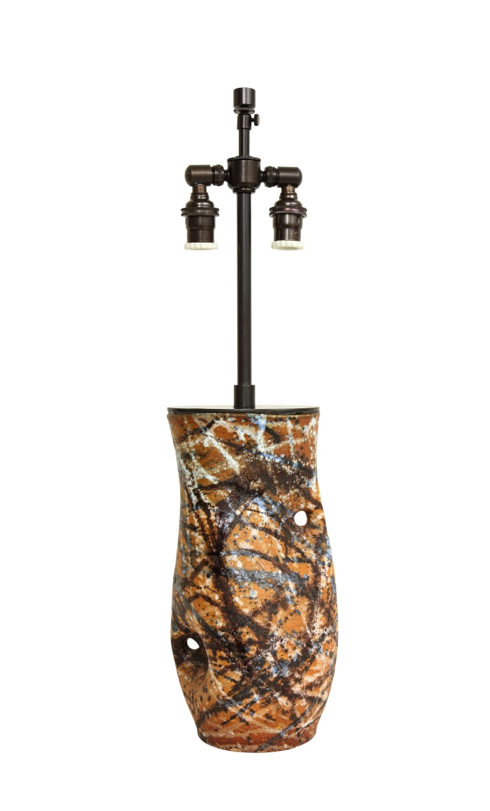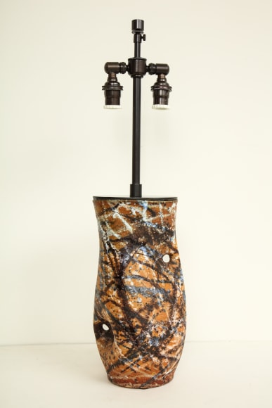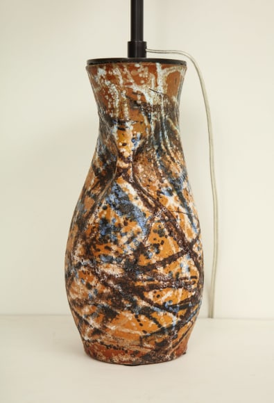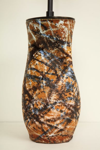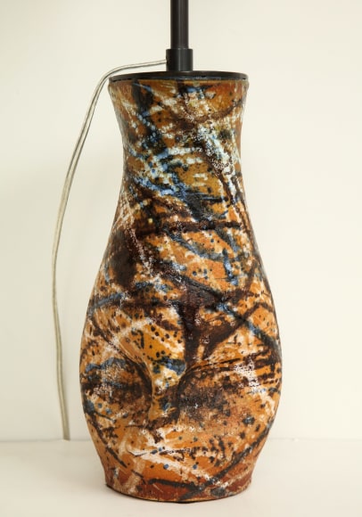 Asymmetrical form ceramic vase/lamp with abstract glaze by Accolay, France c. 1950