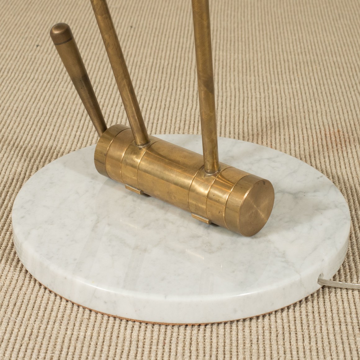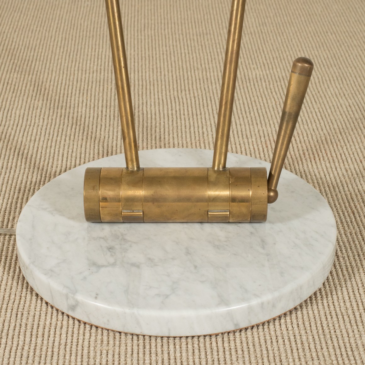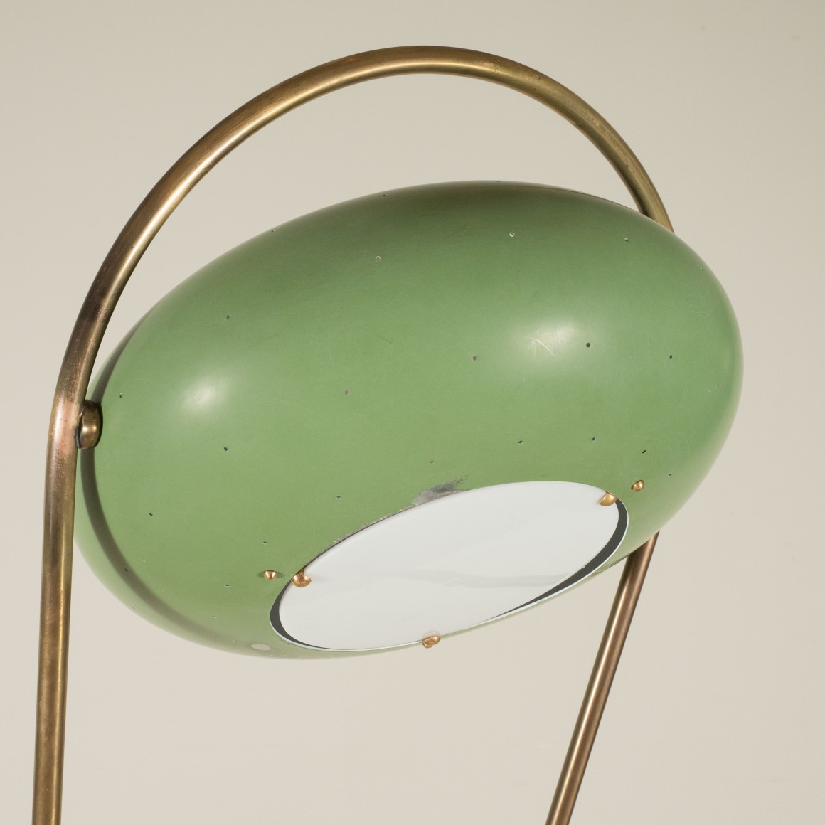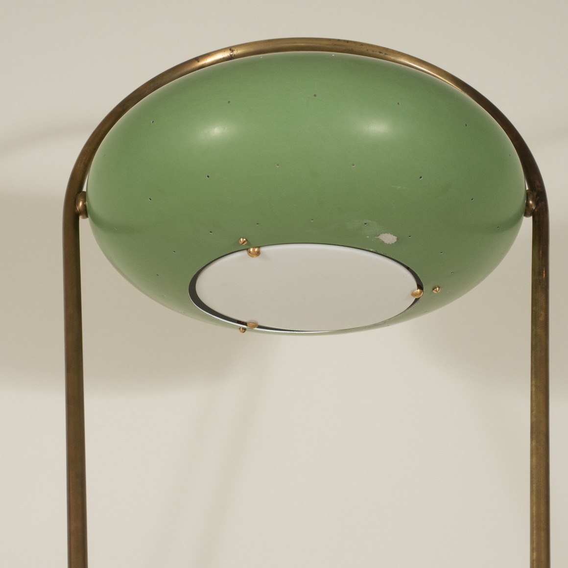 Brass Floor Lamp with green tole shade and marble base in the manner of Angelo Lelii for Arredoluce, Italy c. 1950