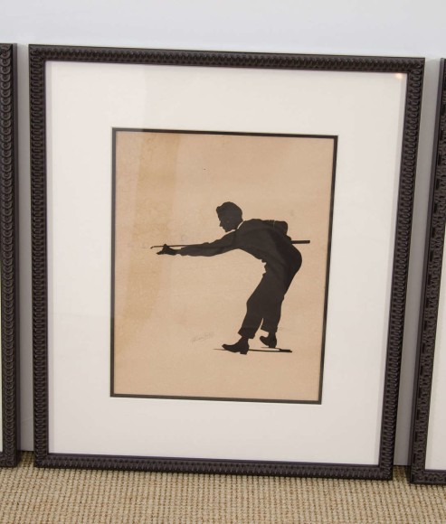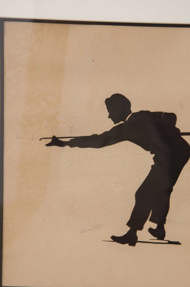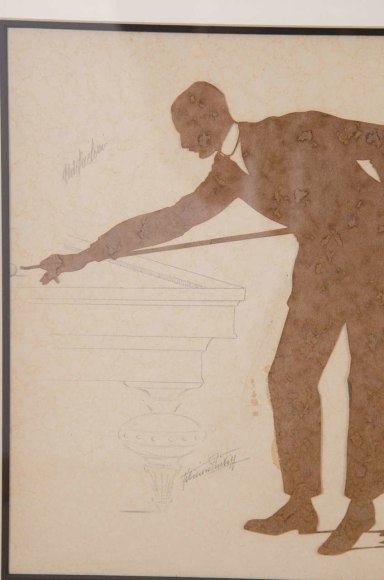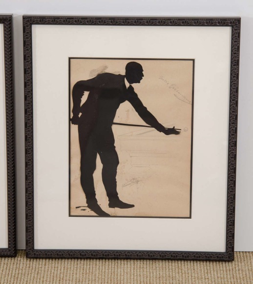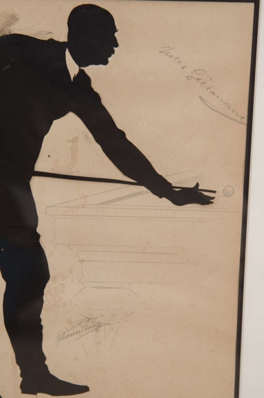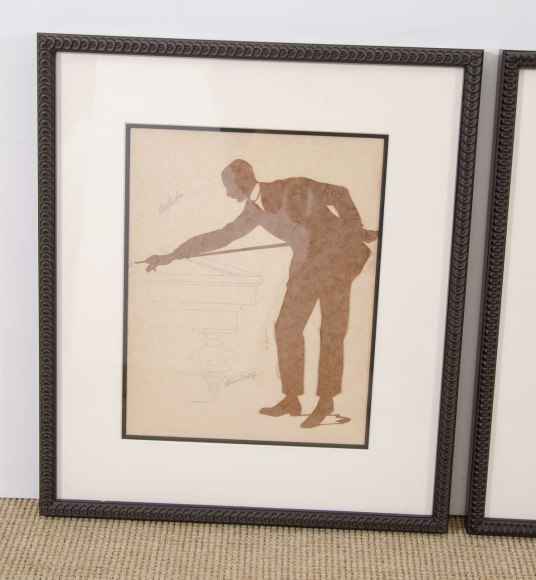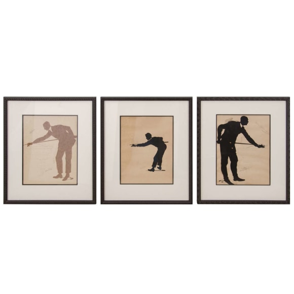 Set of three framed silhouette Billiard players "Jules", Belgium c. 1900