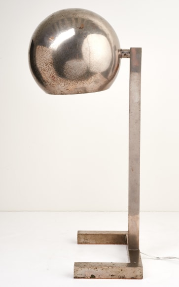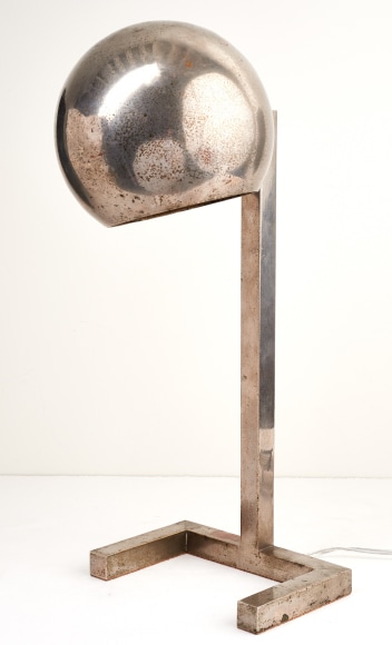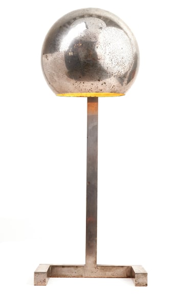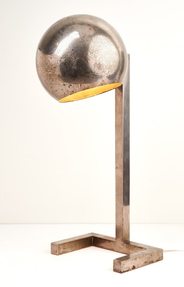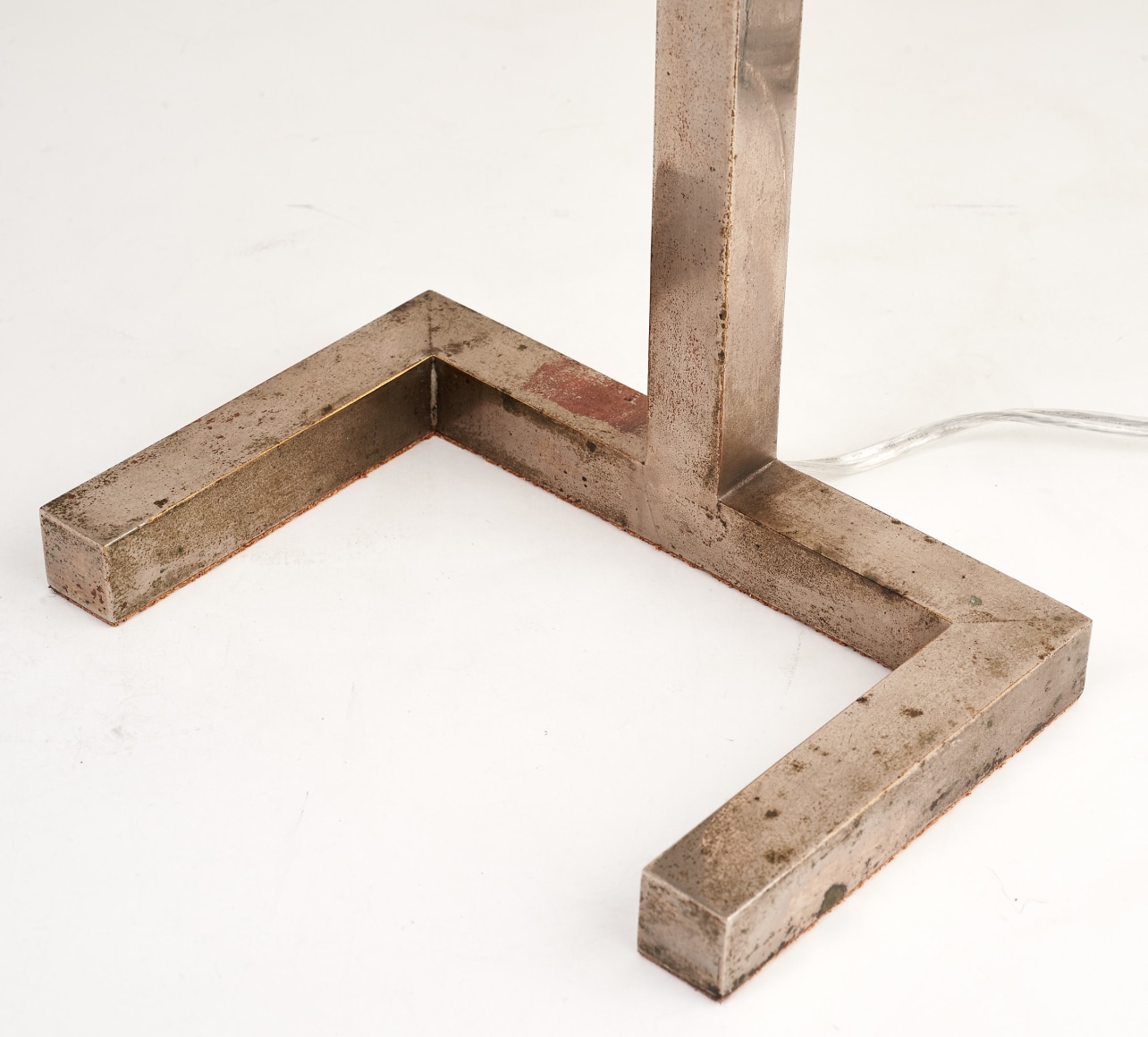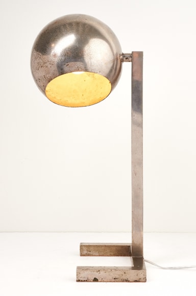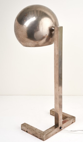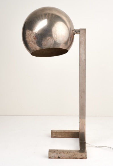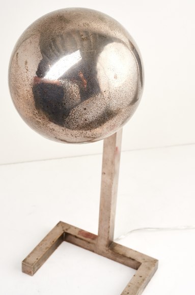 Francis Paul nickel plated Bauhaus style table lamp- Globe reflector on 'U' mental stand, France c. 1930