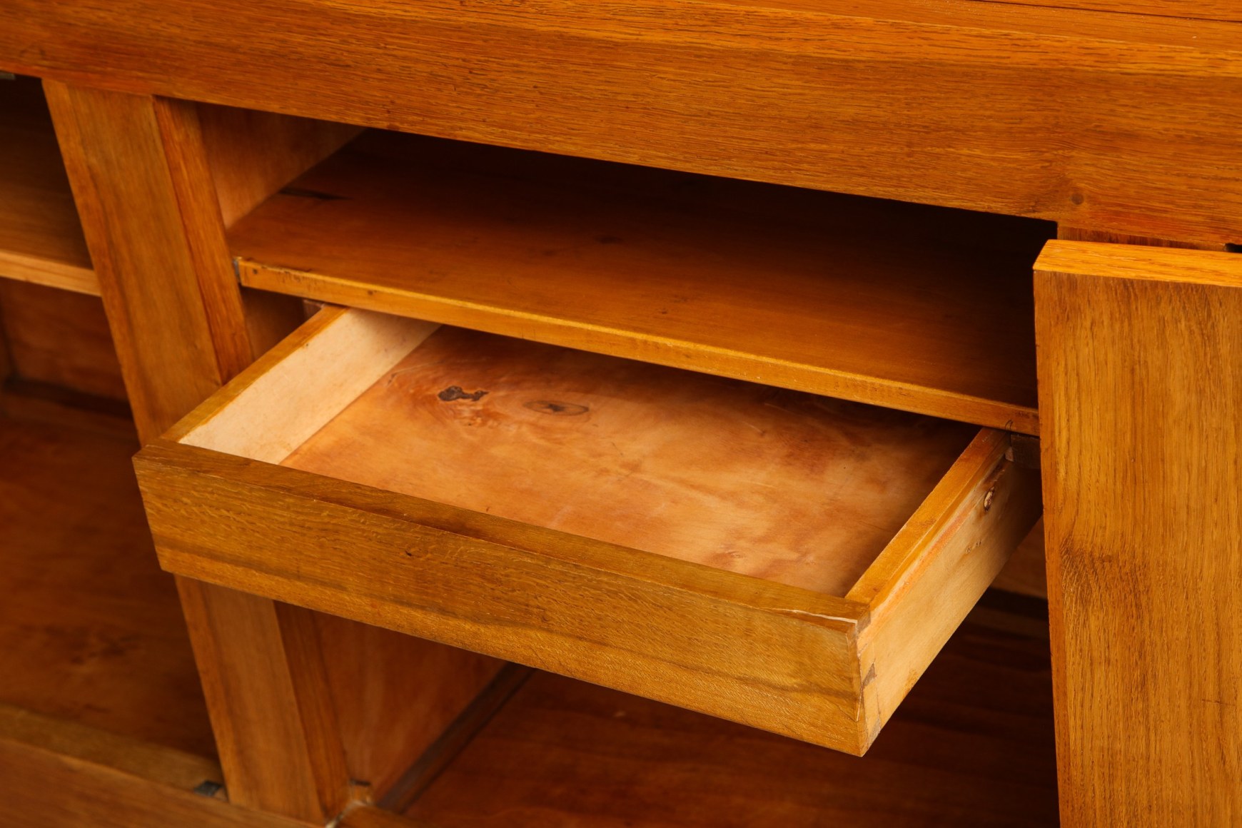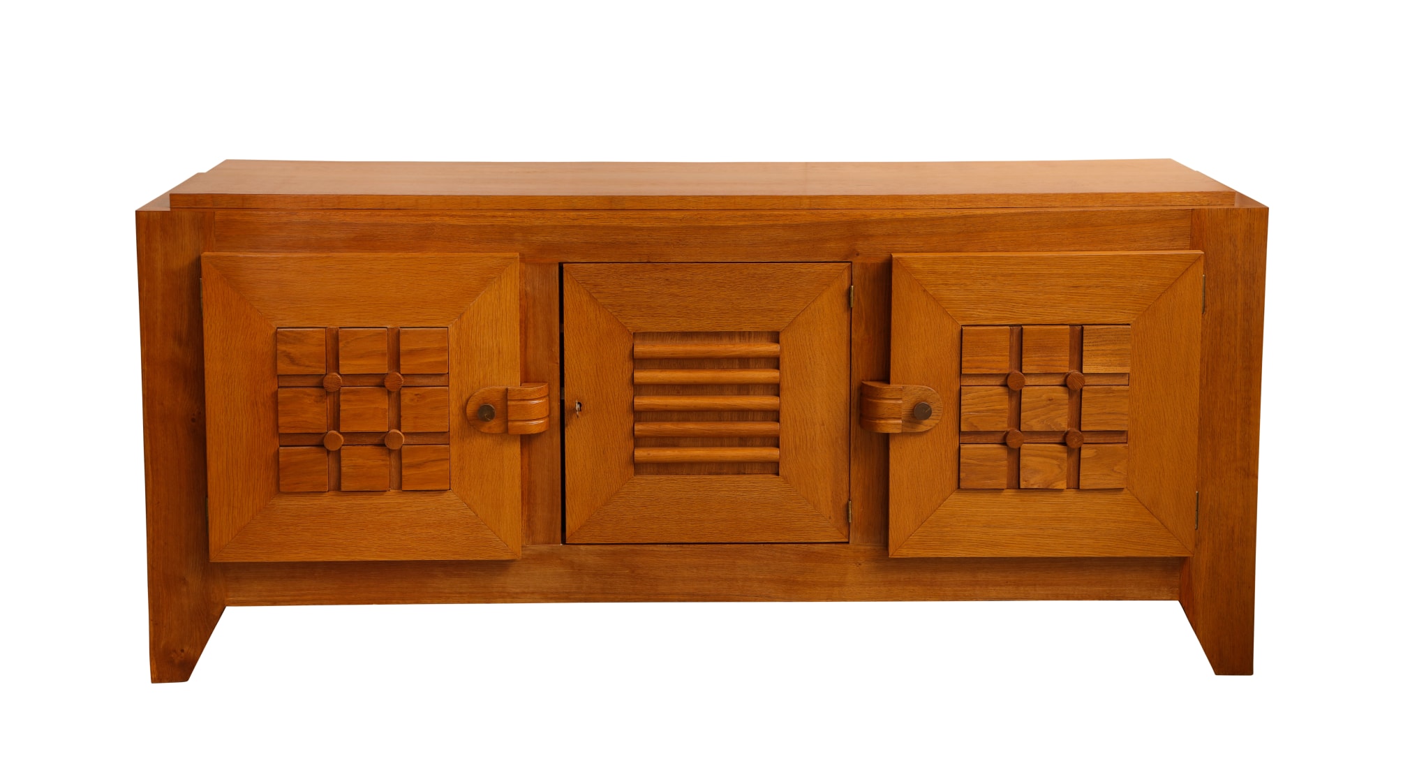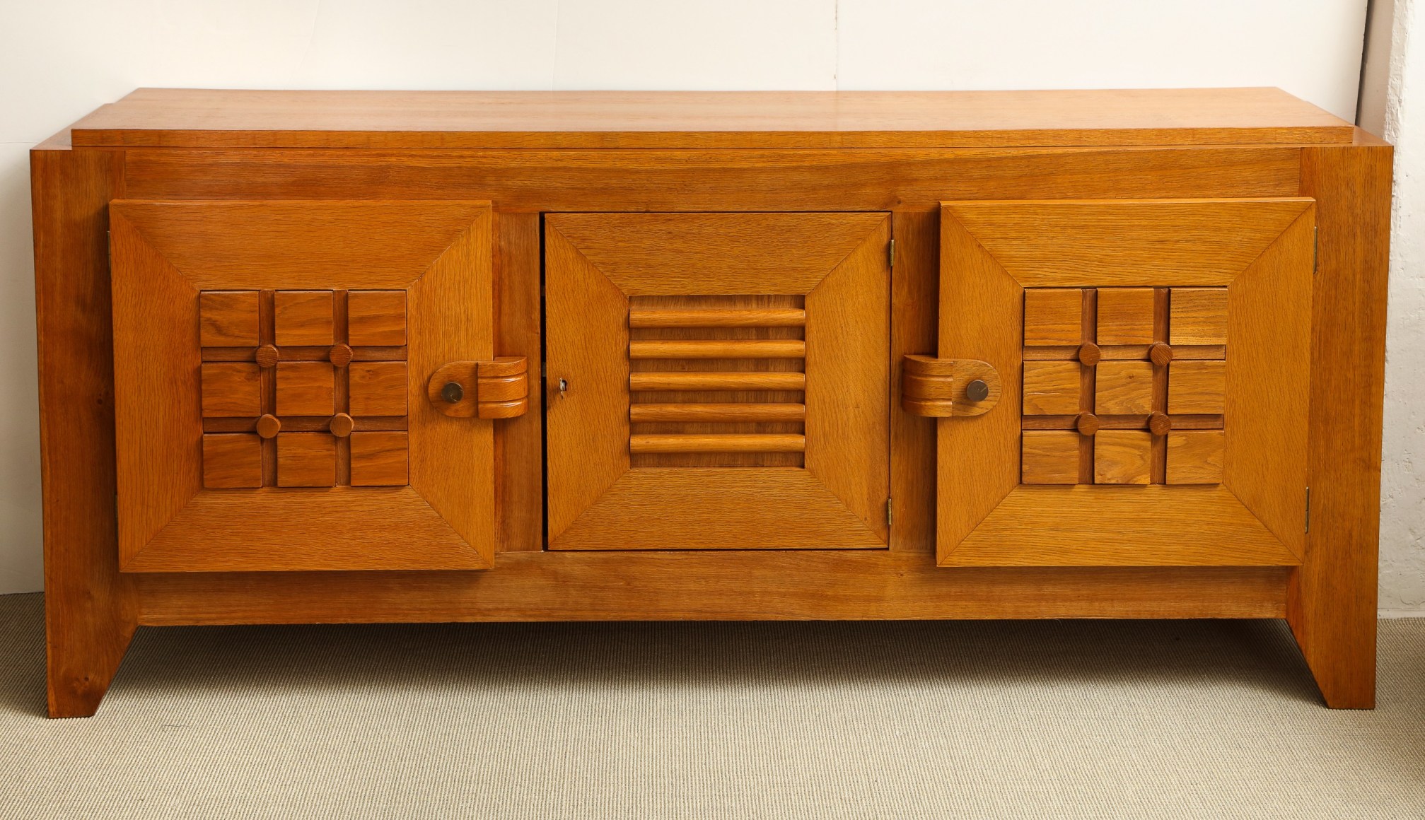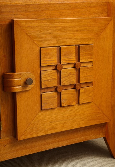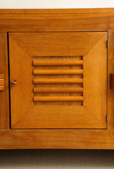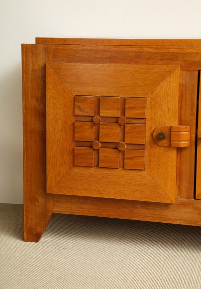 Large oak sculpted front sideboard by Charles Dudouyt