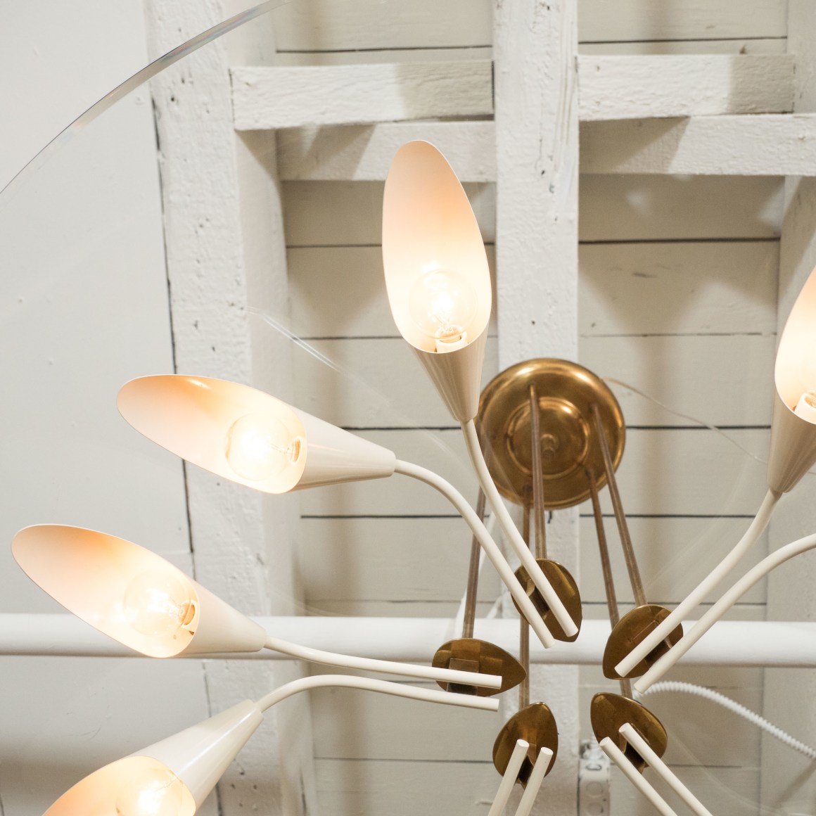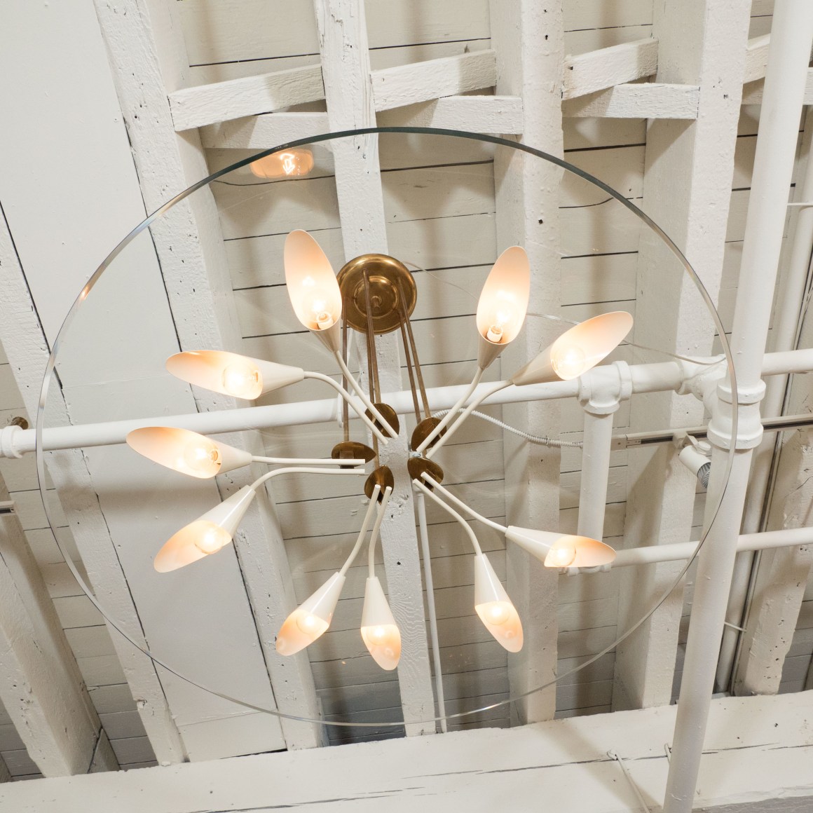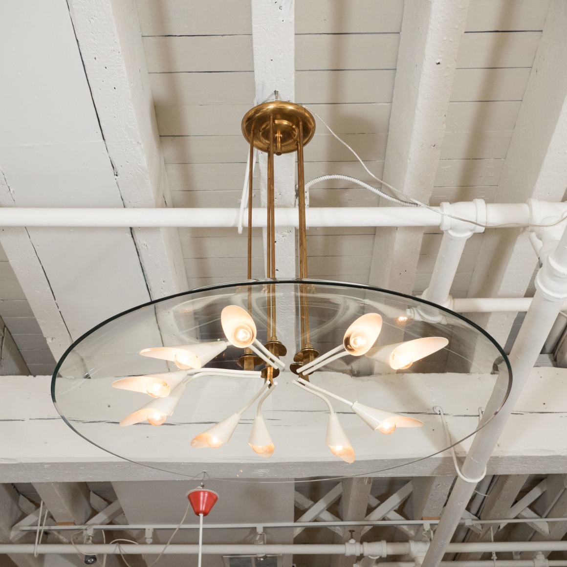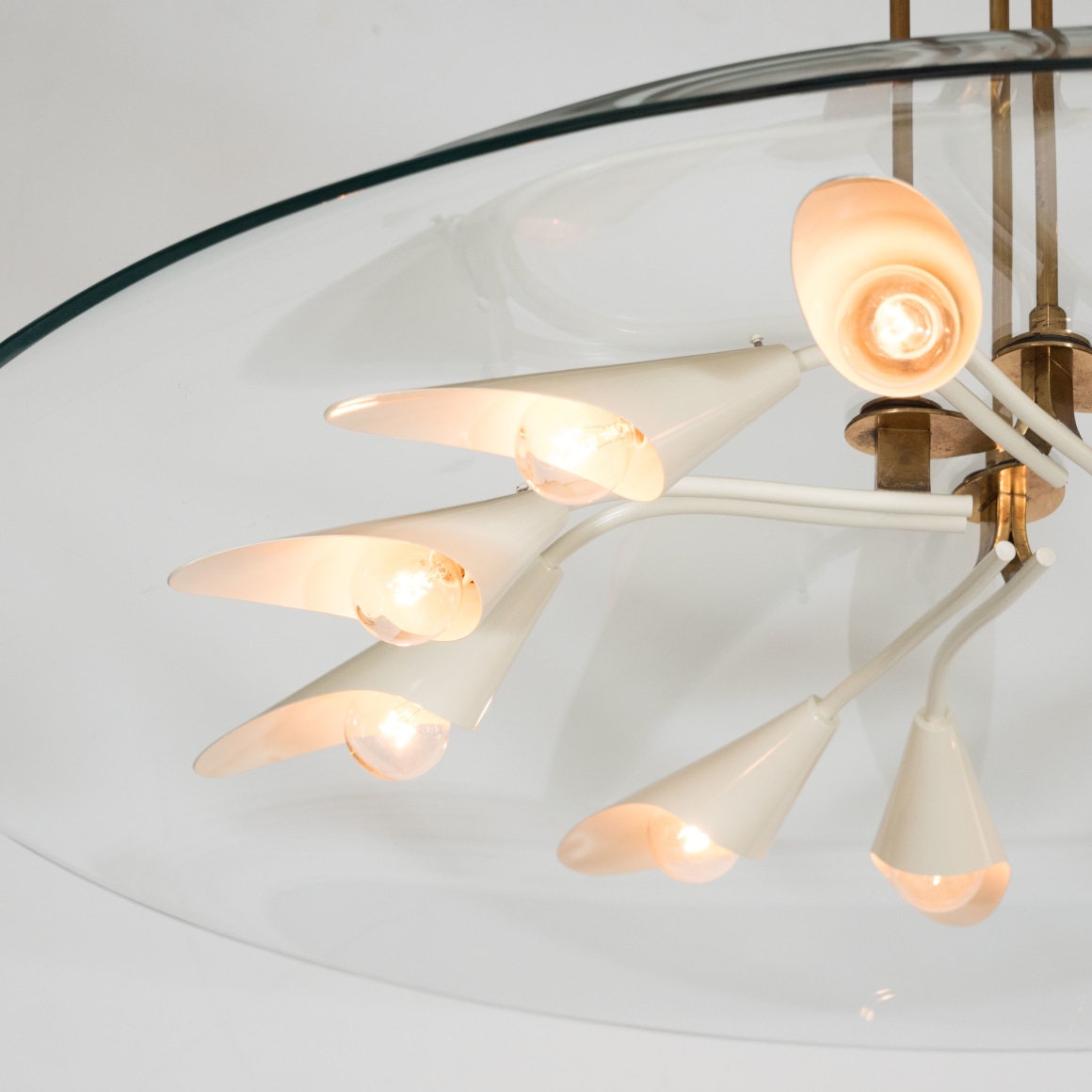 Pietro Chiesa Fontana Arte glass and tole chandelier with 10 shades covered by a glass shade
