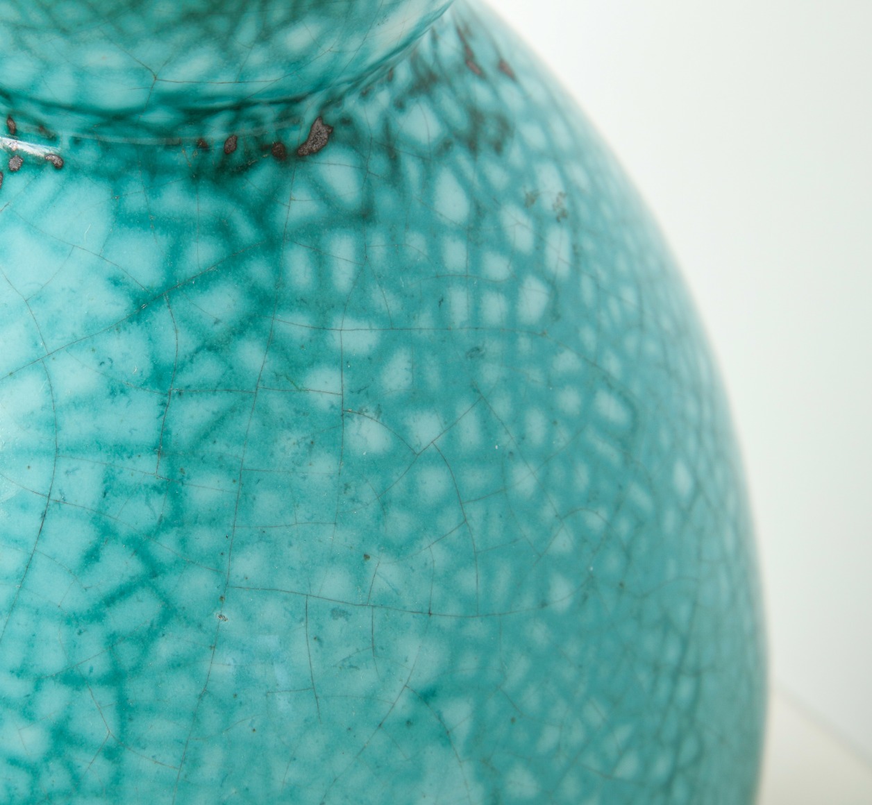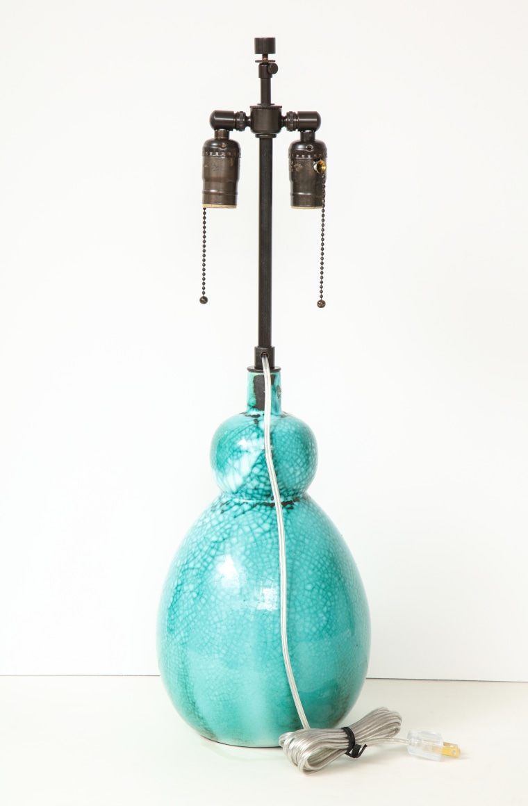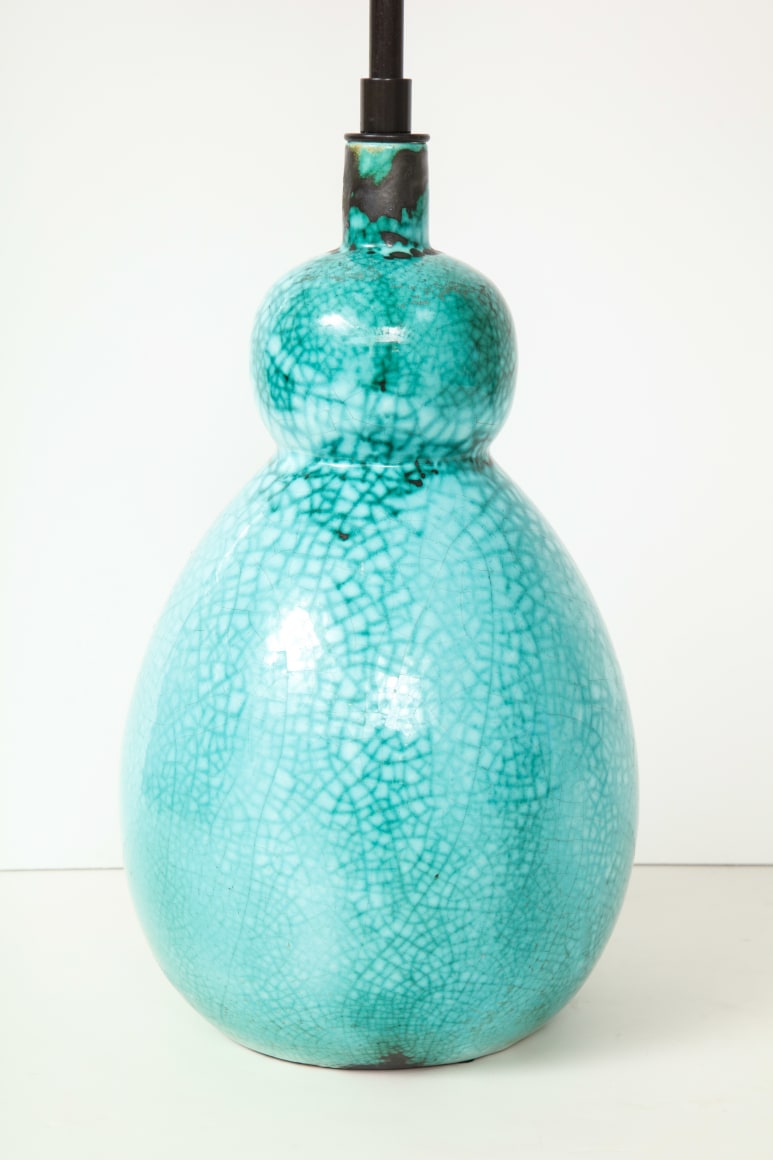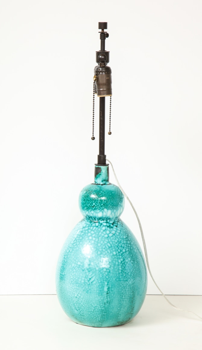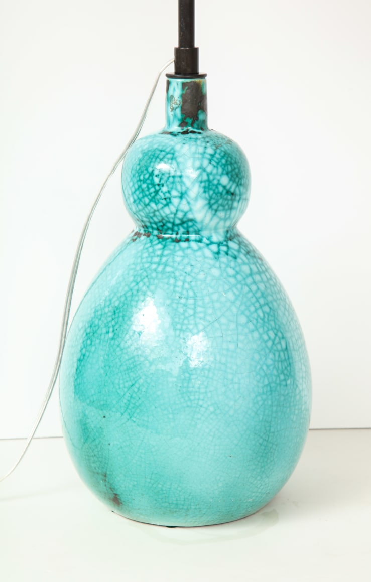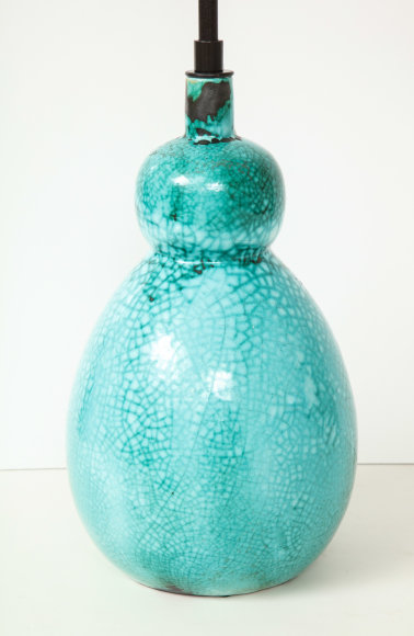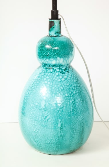 Primavera lamp marked #15756 in blue-green glaze, France c. 1930