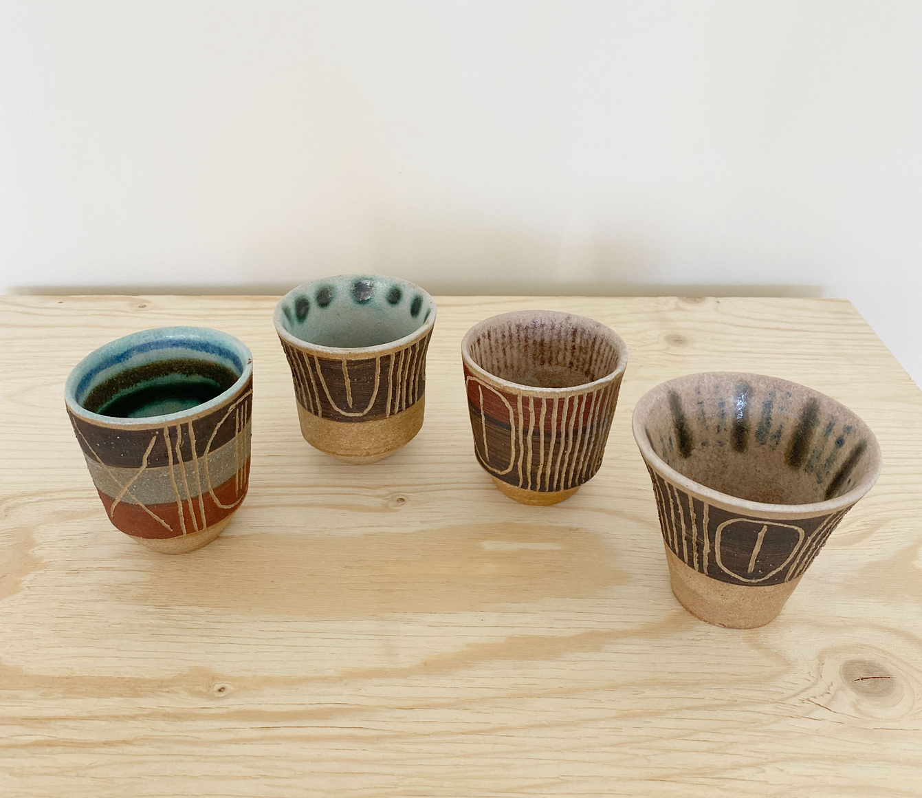 SET OF FOUR BRUNO GAMBONE CERAMIC CUPS