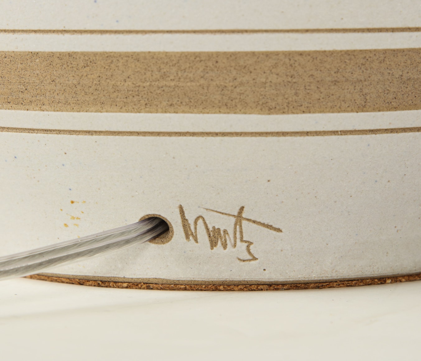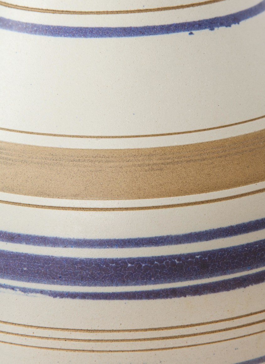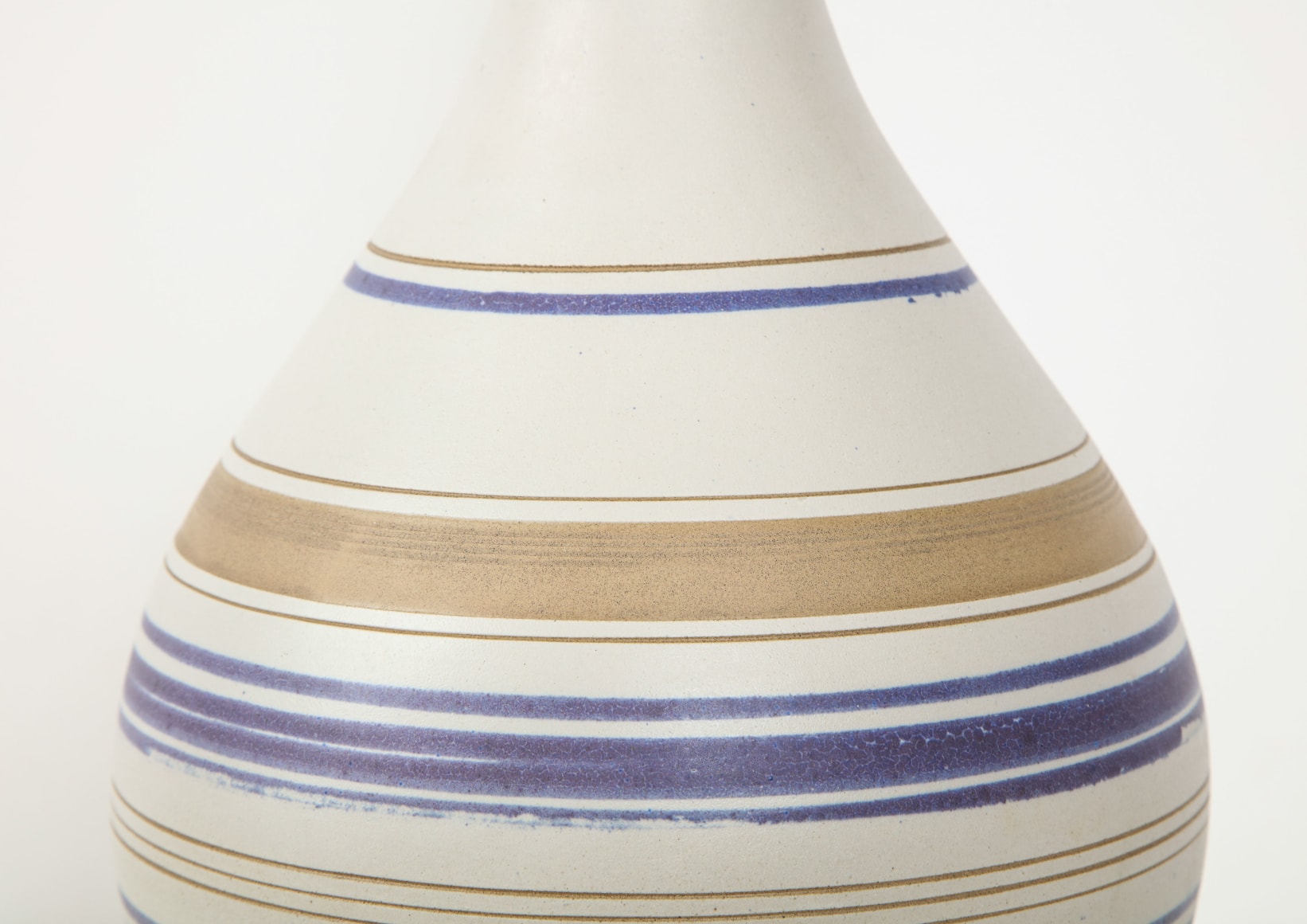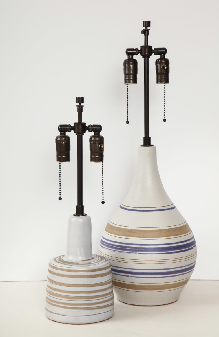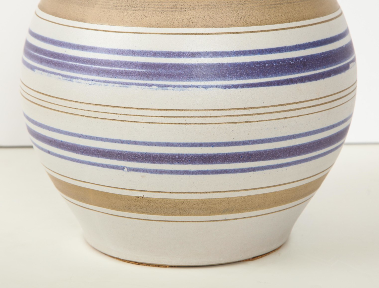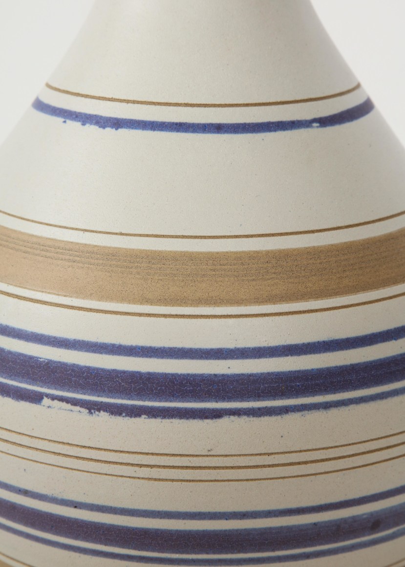 Tall table lamp in blue and taupe stripes by Martz, USA. c. 1950