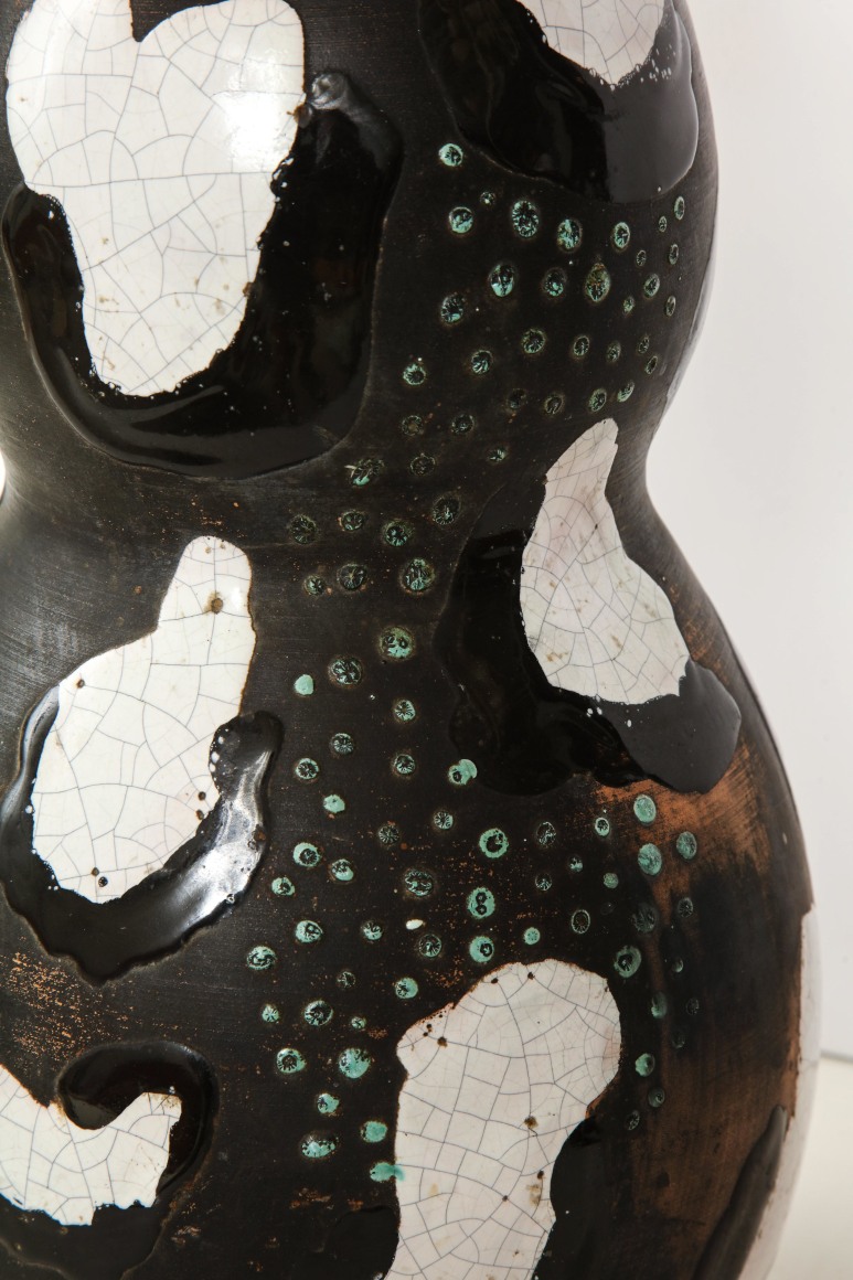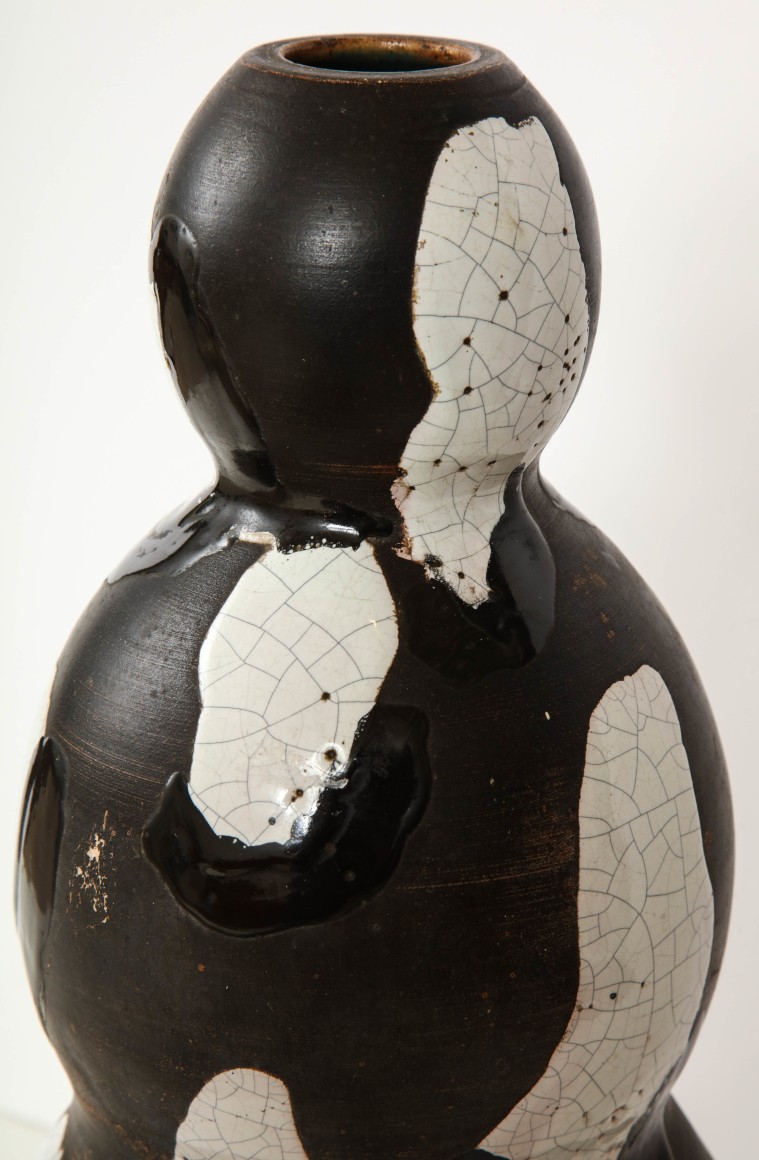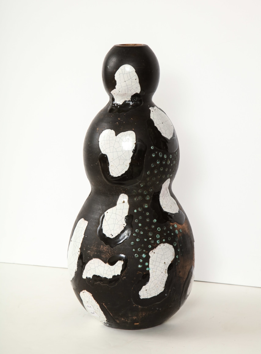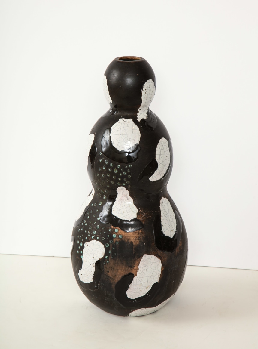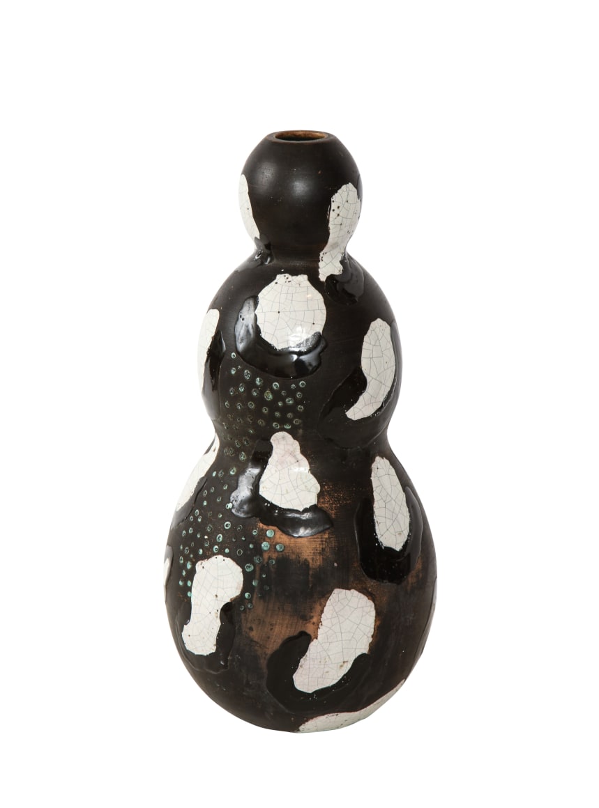 Rare tall Primavera triple gourd vase in brown and white by Claude Levy Model No. 1601