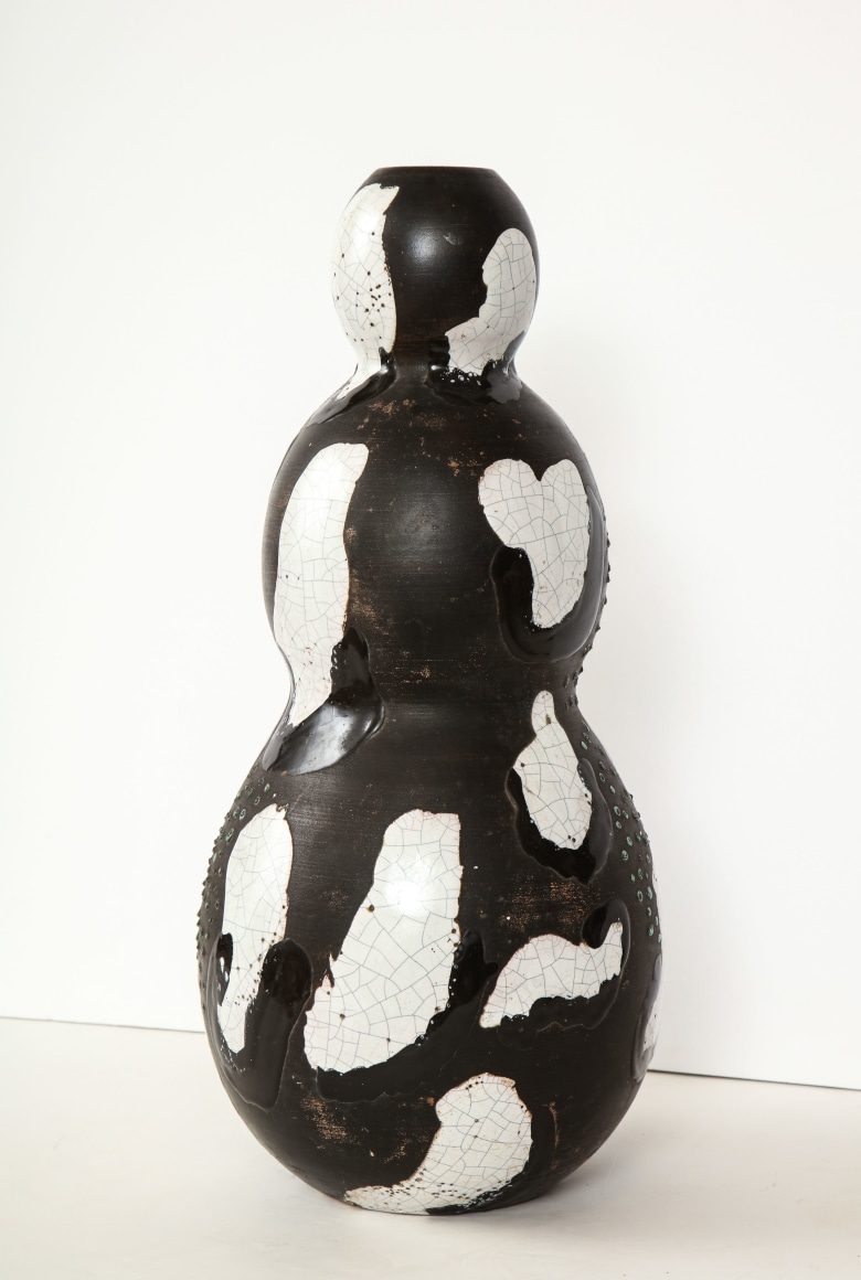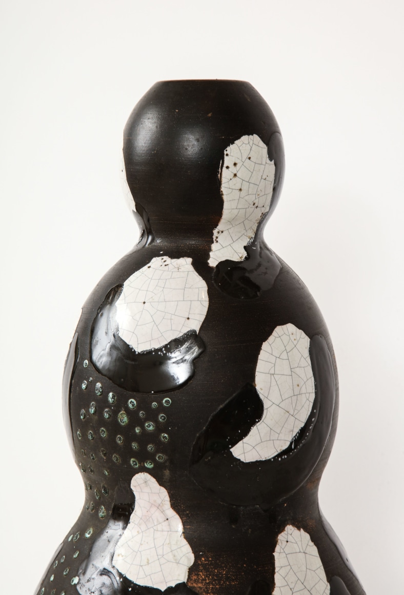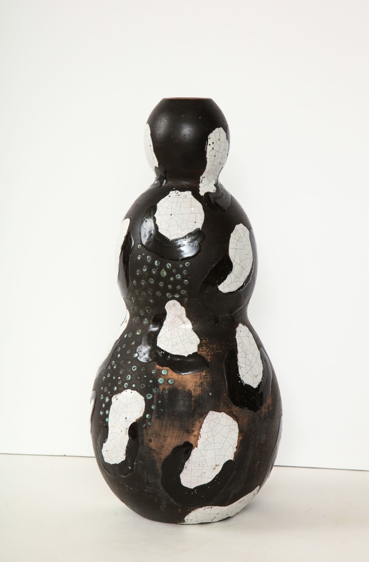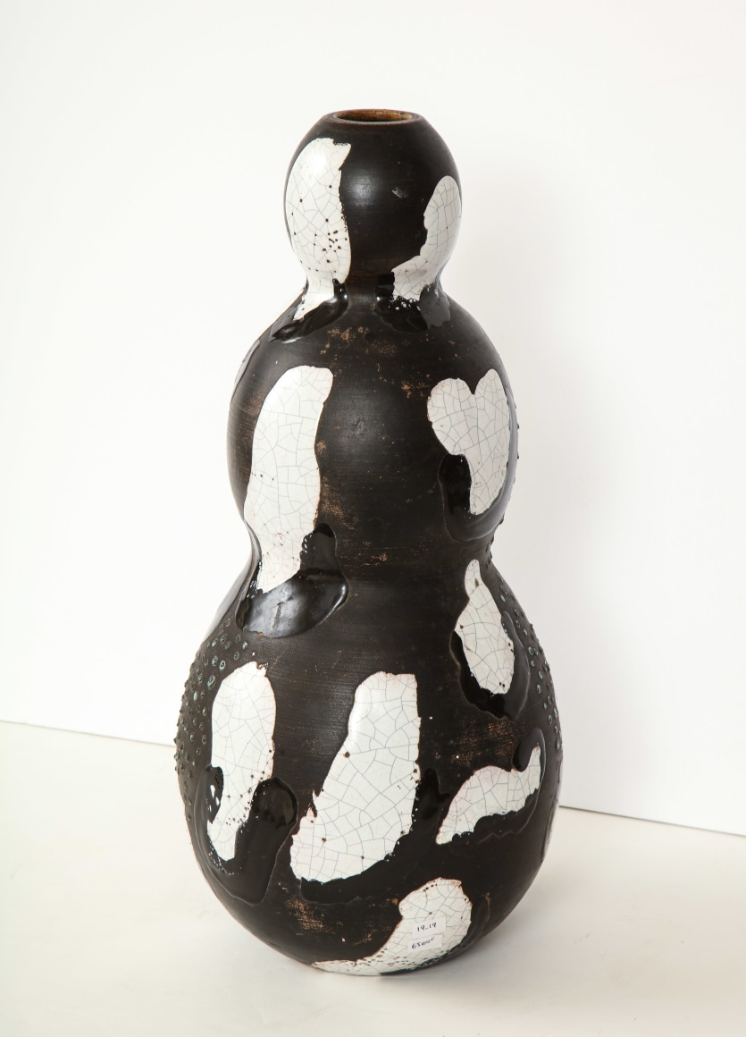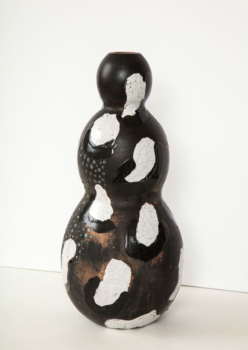 Rare tall Primavera triple gourd vase in brown and white by Claude Levy Model No. 1601