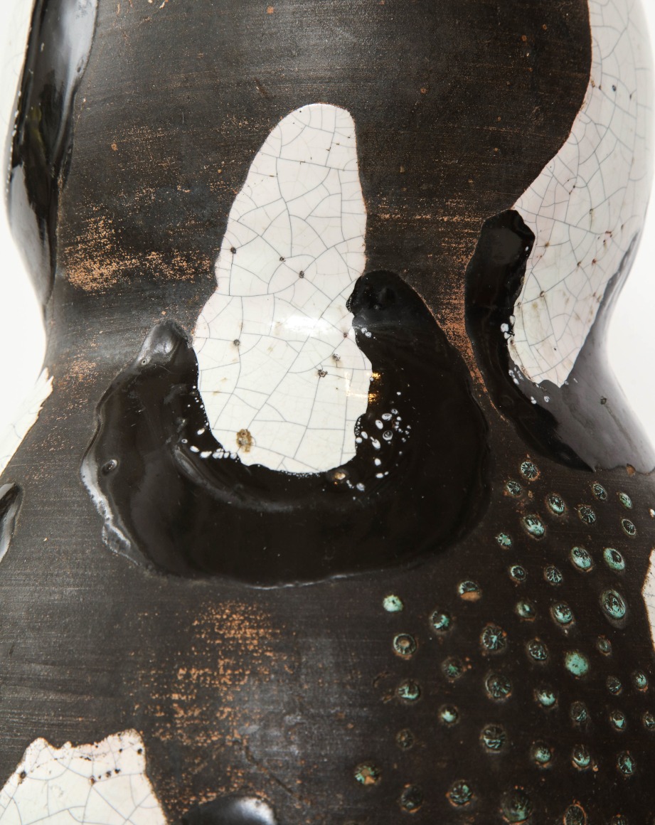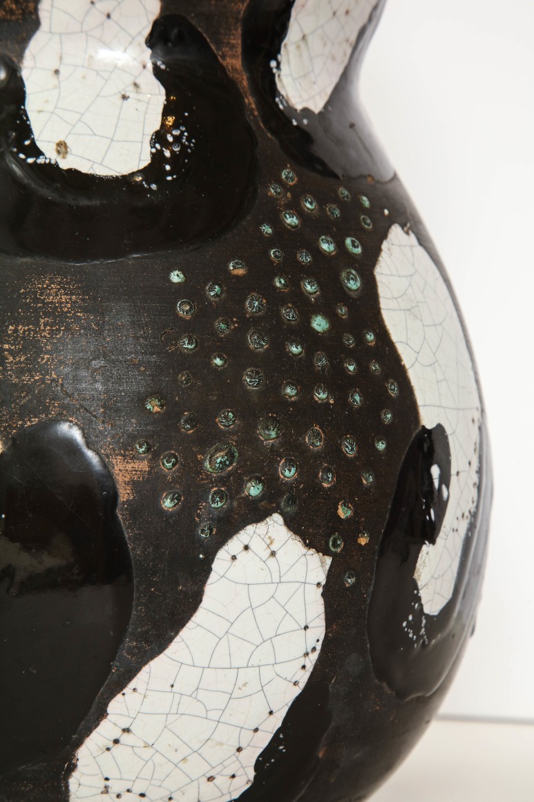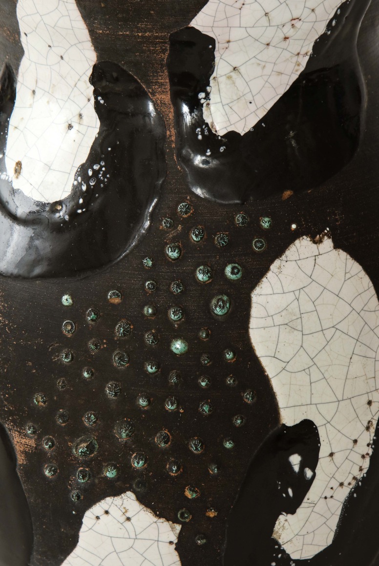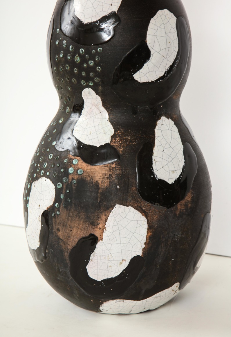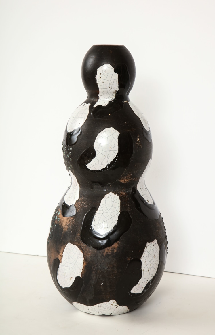 Rare tall Primavera triple gourd vase in brown and white by Claude Levy Model No. 1601