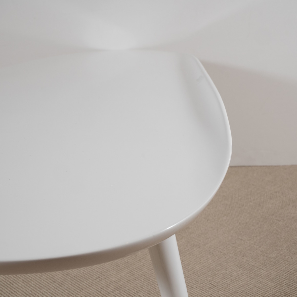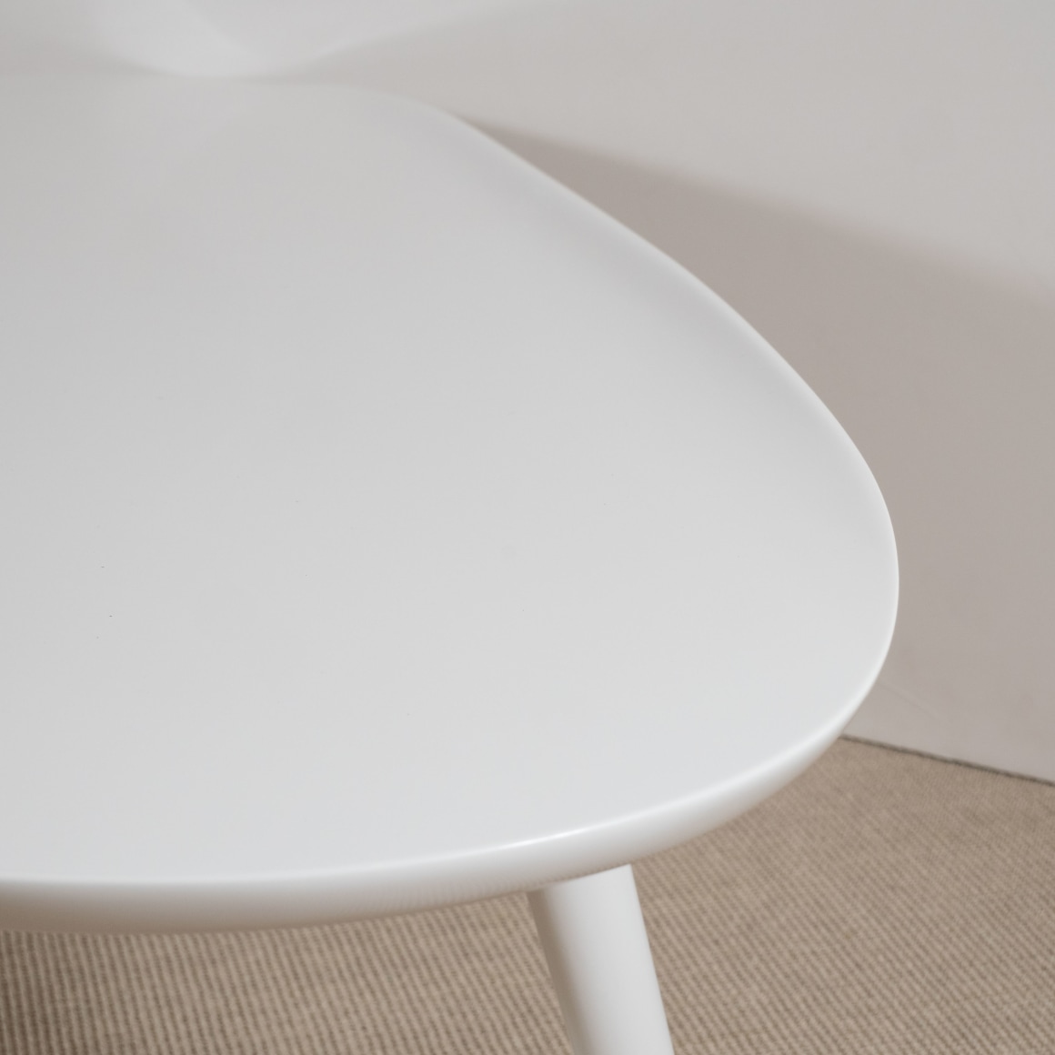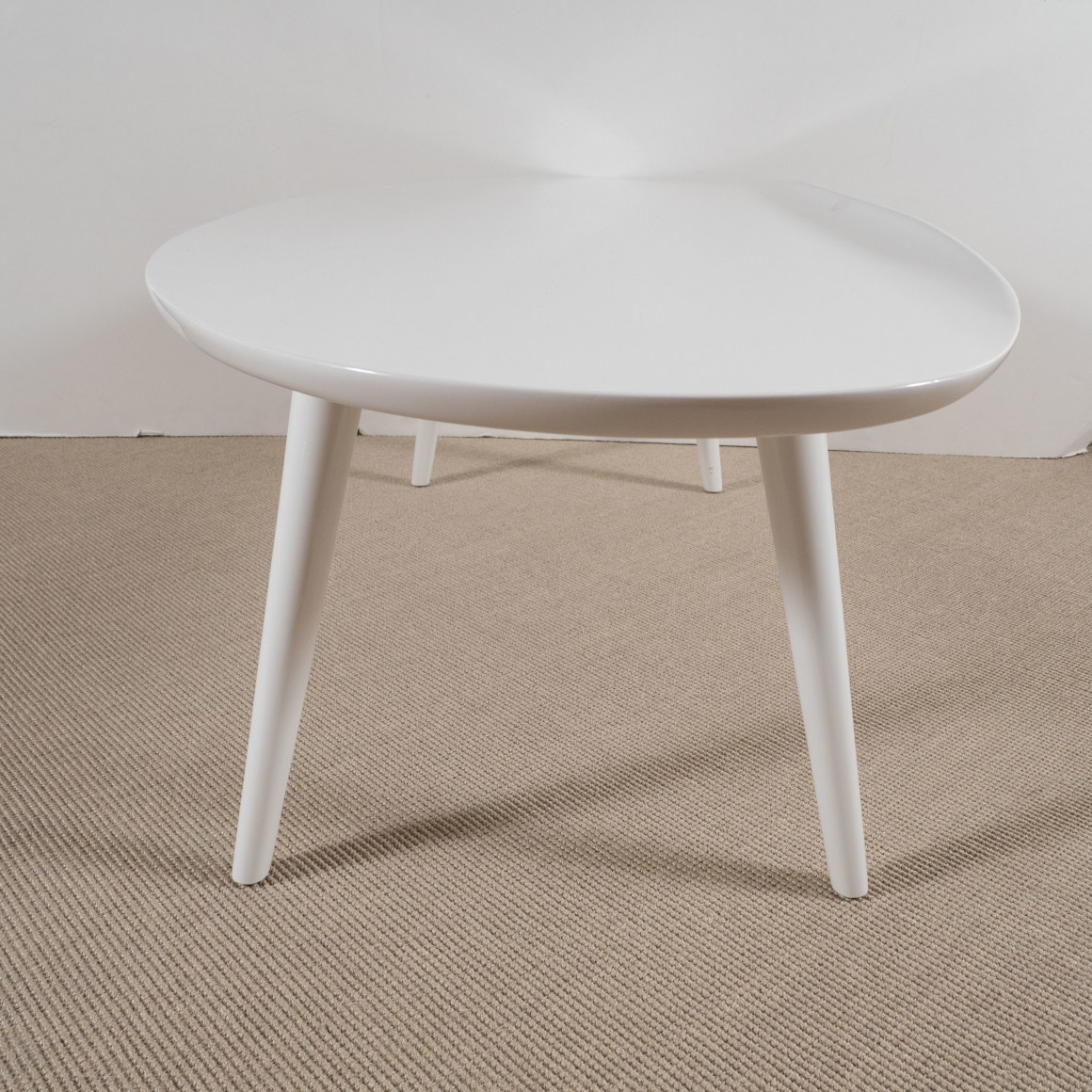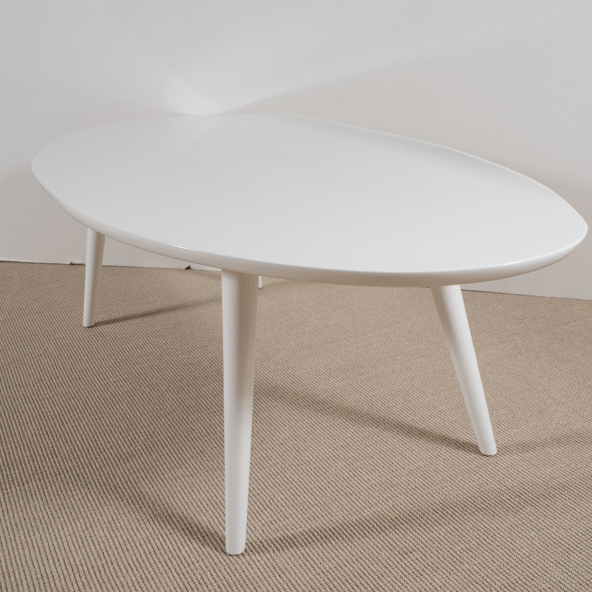 White lacquer Conant Ball Makers Coffee Table with curved lip, splayed tapering slender legs, USA c. 1940